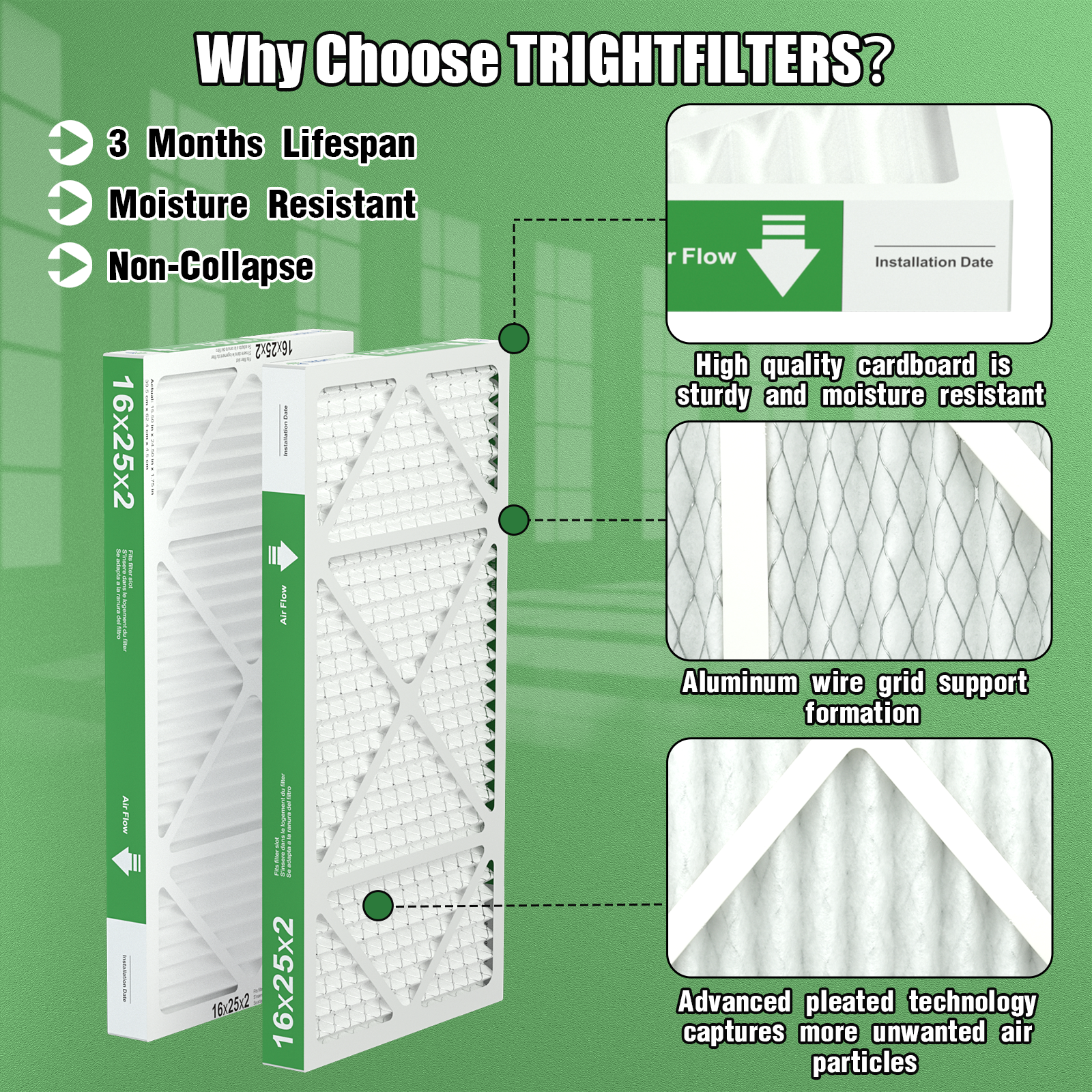 Experience superior indoor air quality with our 16x25x2 MERV-8 Air Filter!