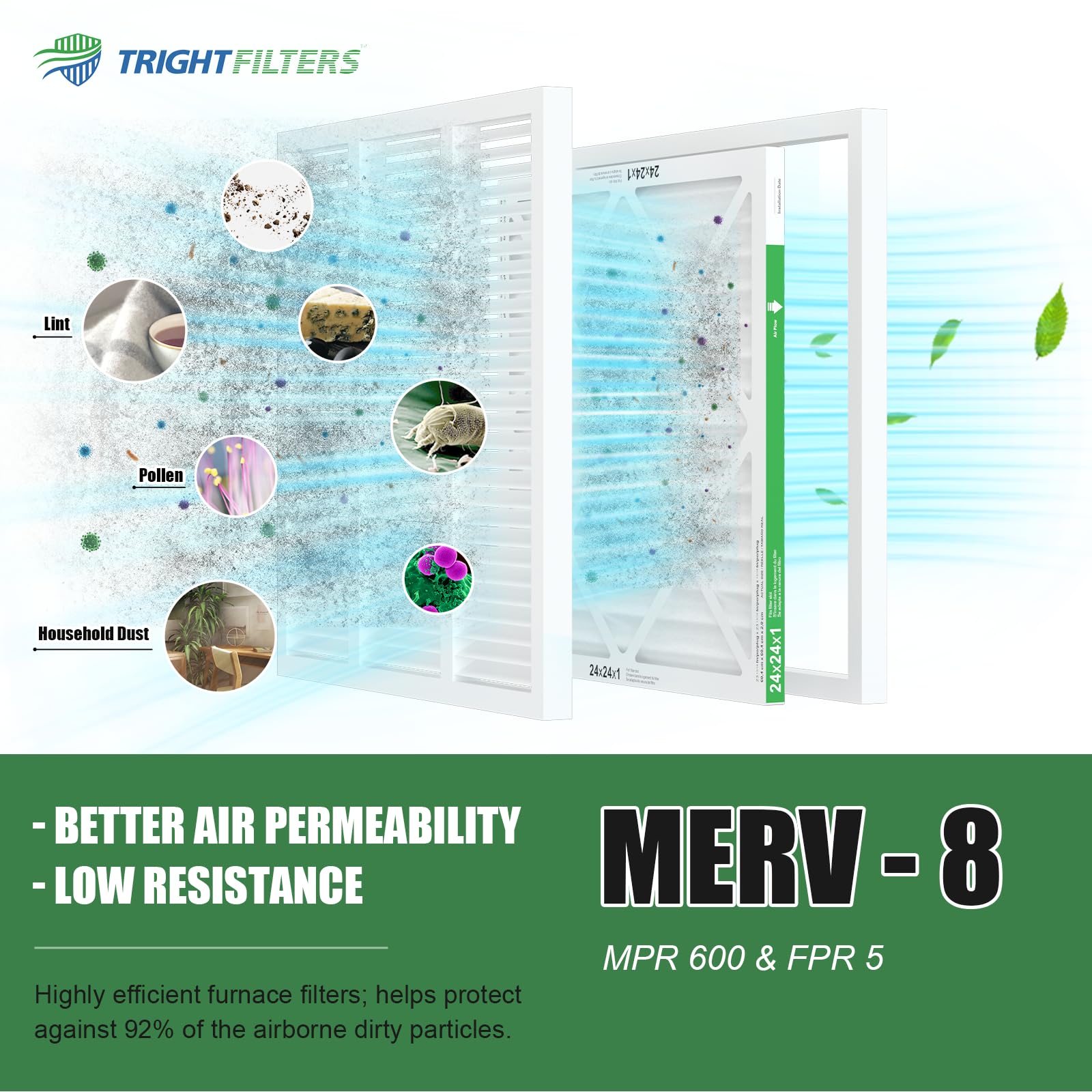 TRIGHTFILTERS MERV 8 24x24x1 filters have better air permeability relative to other MERV ratings, providing better airflow and efficiency and protecting your machine from damage, and extending the life of your machine.